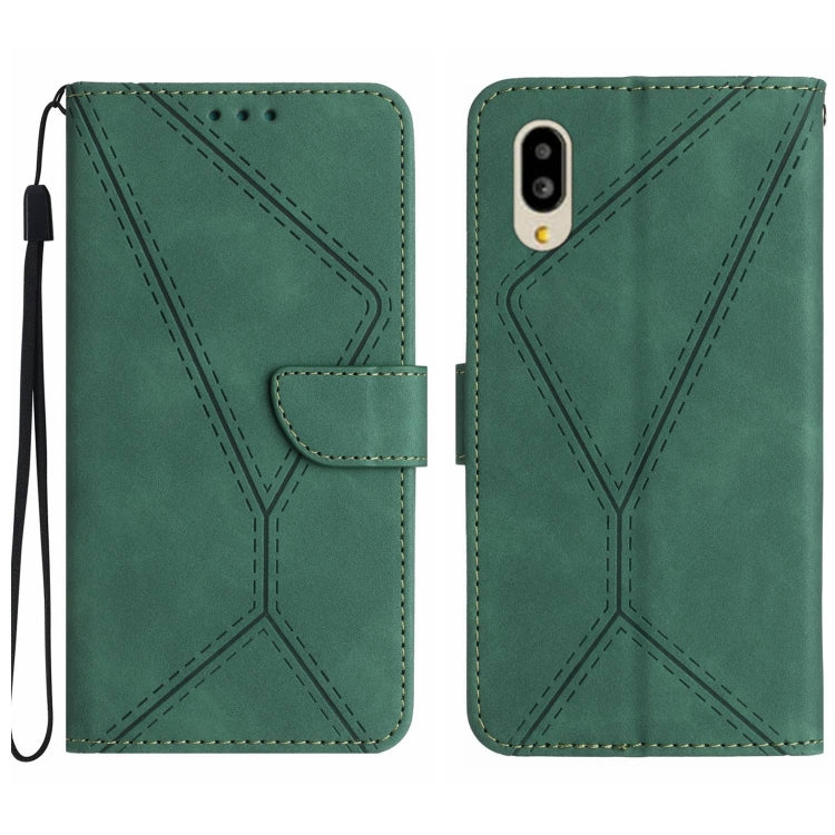 Funda de Teléfono Kyocera Kantan Sumaho3 Cuero En Relieve con Costuras (Verde)