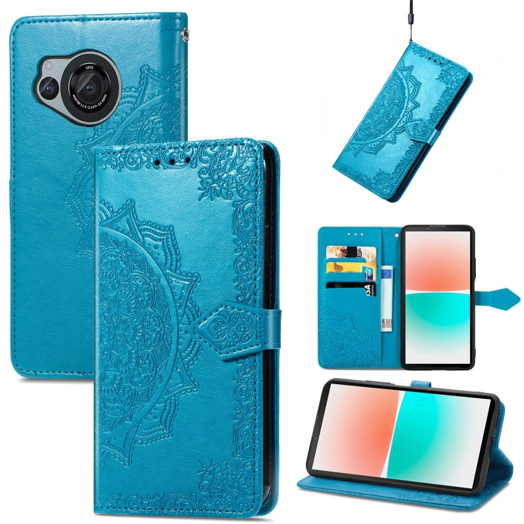 Funda de Cuero para Sharp Aquos R8 Mandala Flower en Relieve para Teléfono (Azul)