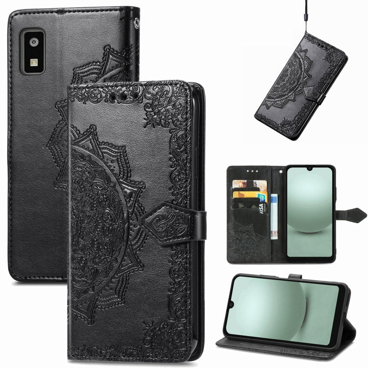Estuche para Teléfono Sharp Aquos Wish 3 Mandala Flower Cuero En Relieve (Negro)