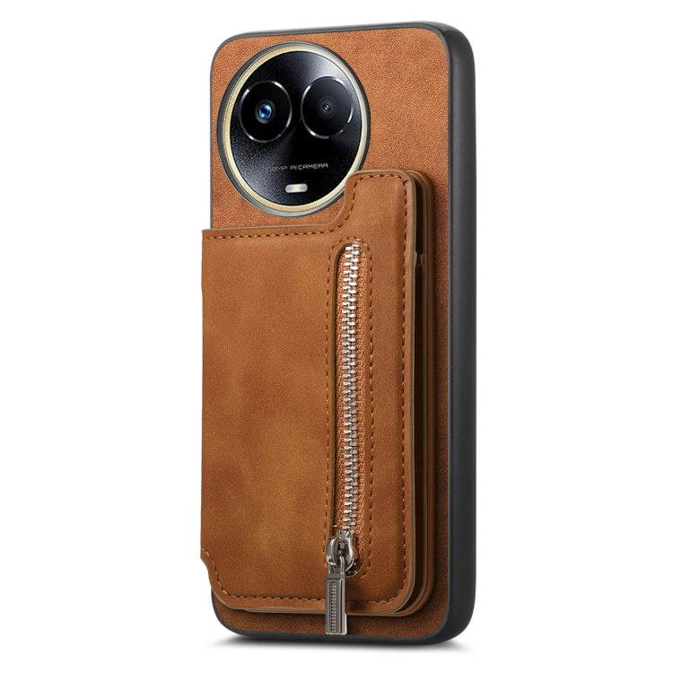 Funda para Teléfono con Cremallera Retro Magsafe para Realme 11 5G Global (Marrón)