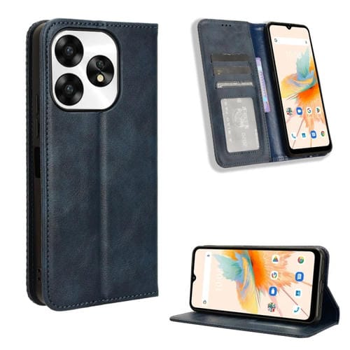 Funda para Umidigi A15 / A15C Cuero Textura Retro Hebilla Magnética (Azul)