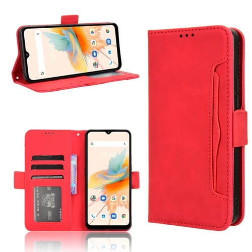Funda de Cuero Umidigi A15 A15C Skin Feel con Ranuras para Tarjetas (Rojo)