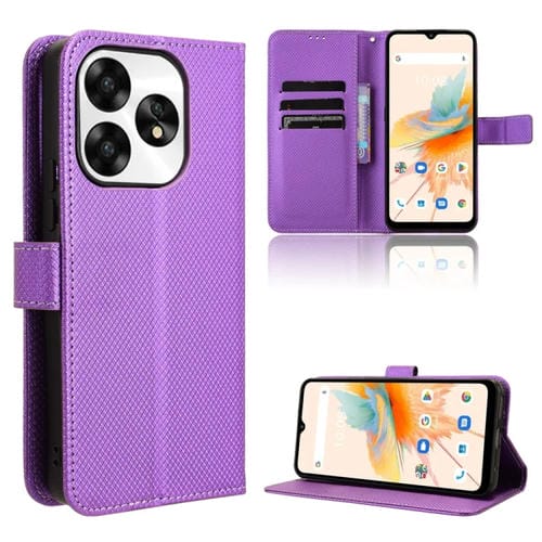 Funda de Cuero para Umidigi A15 / A15C con Textura de Diamante (Púrpura)