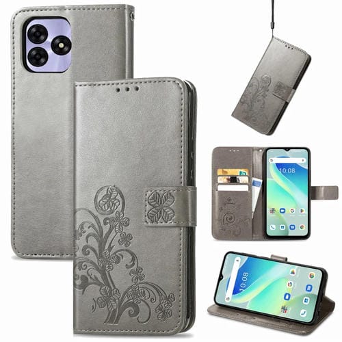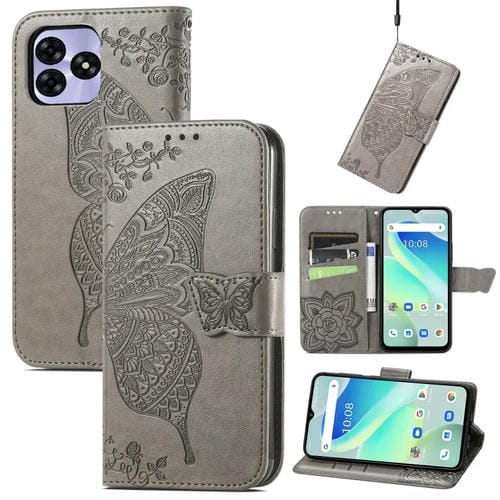 Funda de Cuero para Umidigi G5 Butterfly Love Flower con Relieve (Gris)