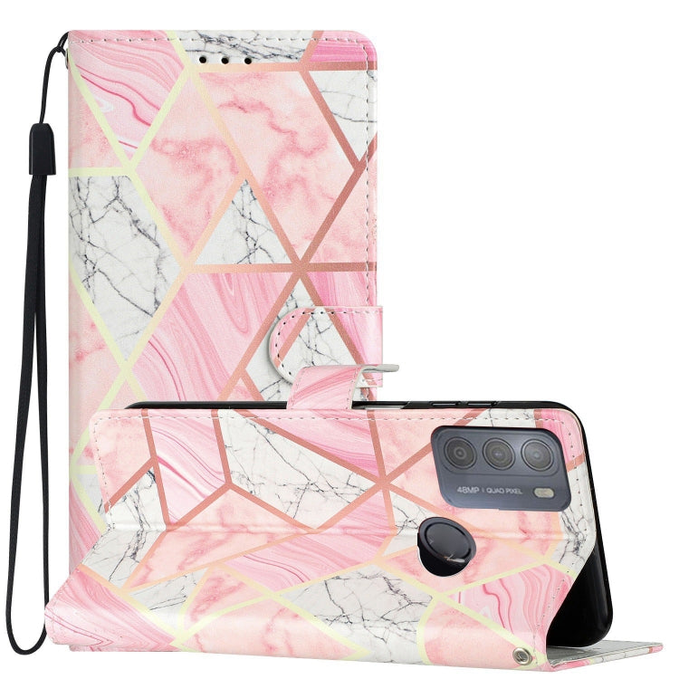 Estuche para Motorola Moto G50 de Cuero con Dibujo Coloreado (Mármol Rosa)
