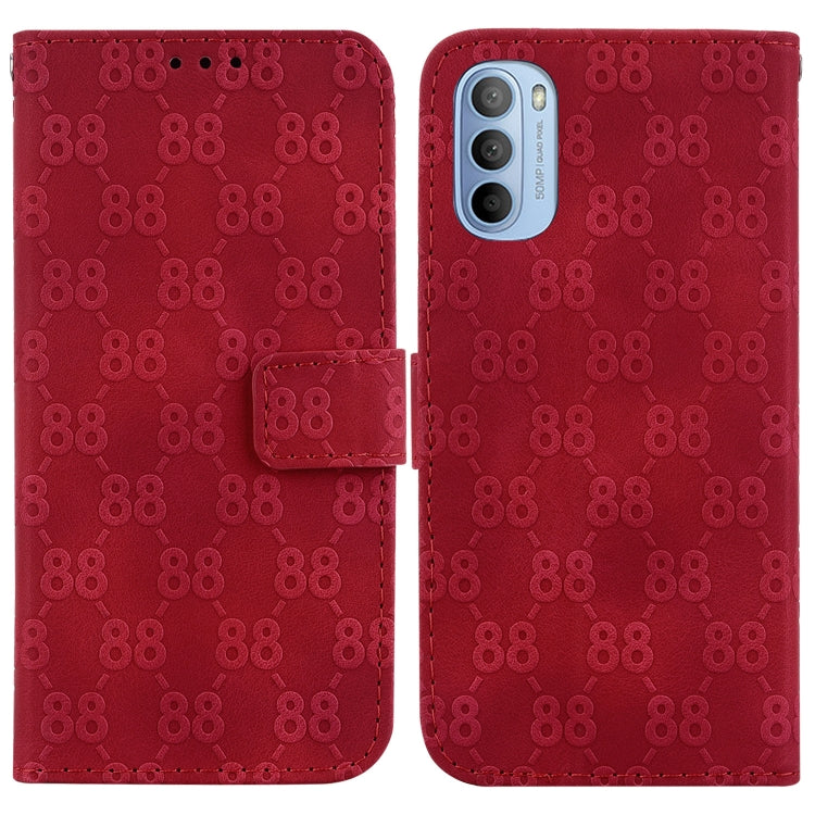 Estuche para Motorola Moto G51 de Cuero en Relieve con Doble Forma de 8 (Rojo)