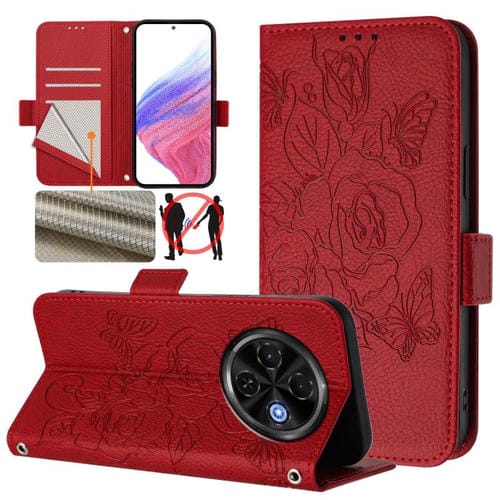 Funda de Cuero Antirrobo RFID con Relieve para Tecno Camon 30 5G/4G (Rojo)