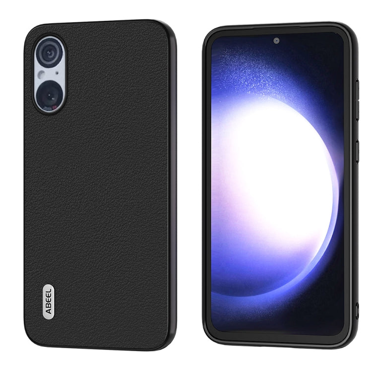 Funda para Sony Xperia 5 V Abeel con Borde Ondulado de Cuero Genuino (Negro)