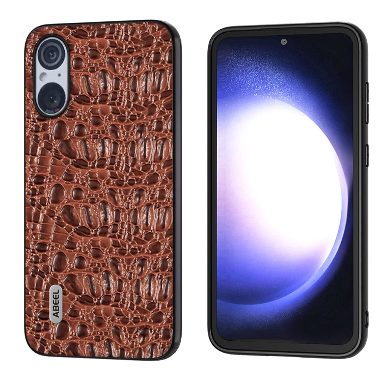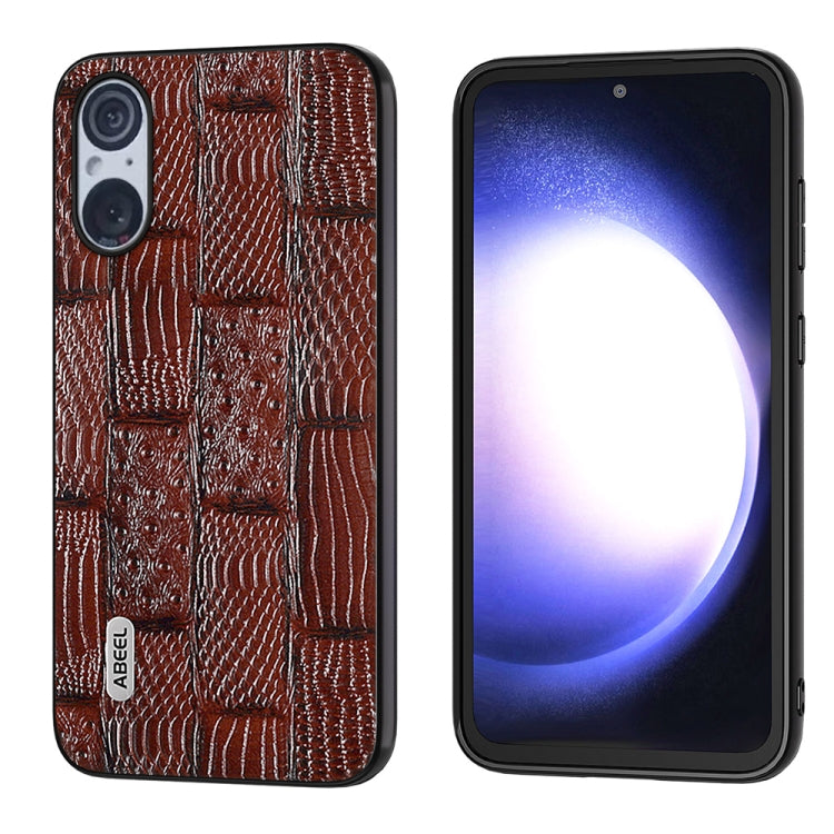 Funda para Sony Xperia 5 V Abeel Mahjong Texture Series Cuero Genuino (Marrón)