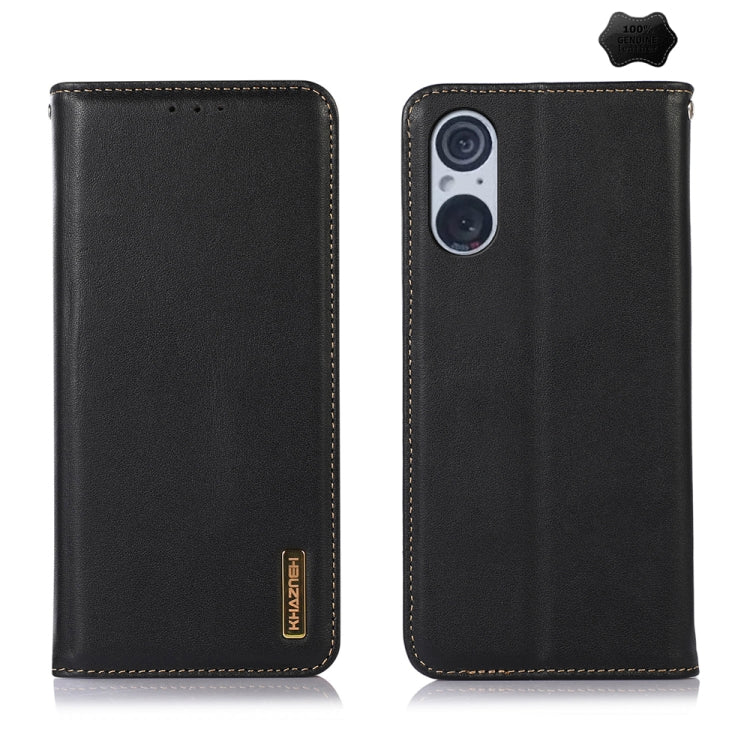 Funda para Sony Xperia 5 V Khazneh Nappa de Cuero de Vaca con Capa Superior (Negro)