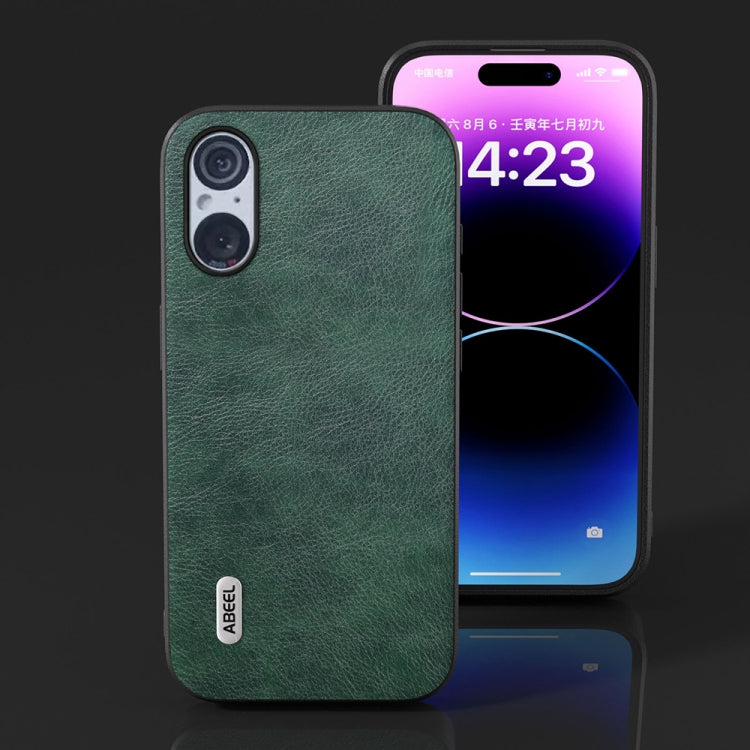 Funda para Sony Xperia 5 V Abeel de PU con Textura Lichi y Doble Color (Verde)