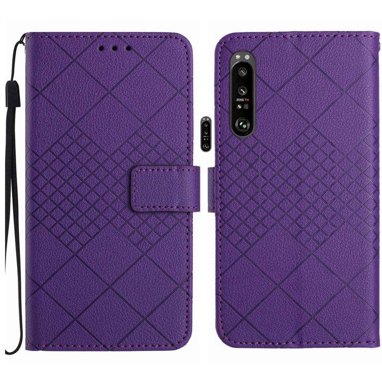 Funda de Cuero para Sony Xperia 1 III con Textura de Rejilla Rómbica (Púrpura)