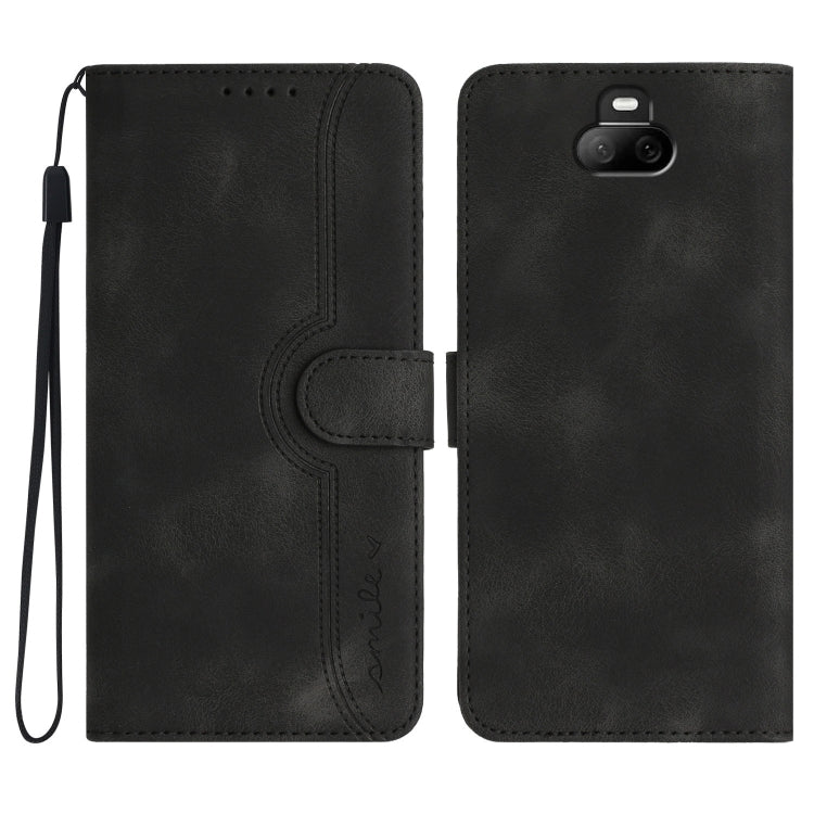 Funda de Cuero para Sony Xperia 20 con Patrón de Corazón y Sensación de Piel (Negro)