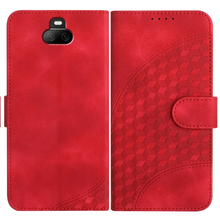 Funda de Cuero para Sony Xperia 20 con Sensación de Piel y Patrón de Corazón (Rojo)