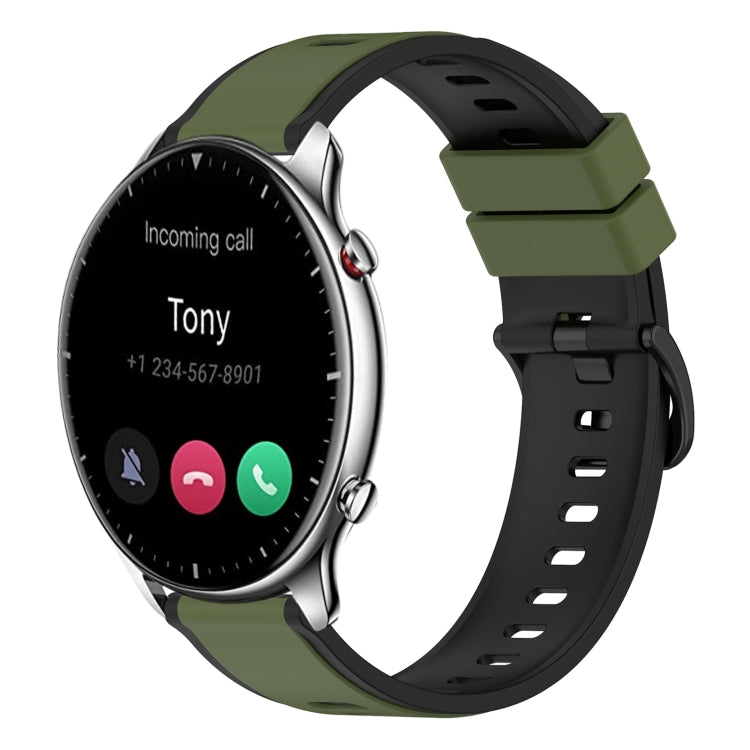 Correa de Reloj para Amazfit 3 22mm Silicona Dos Colores (Verde Militar + Negro)