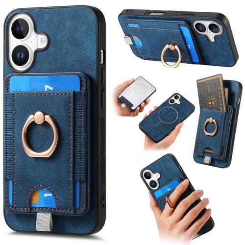 Funda de cuero con tarjetero magnético divisible para iPhone 17 (azul)