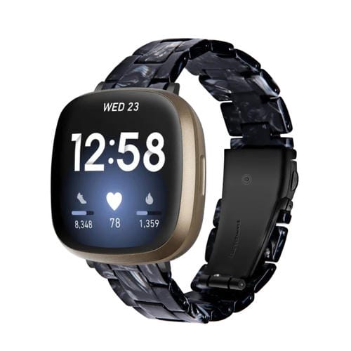 Correa de Reloj de Resina Universal para Fitbit Versa 3 y Sense (Flor Negra)