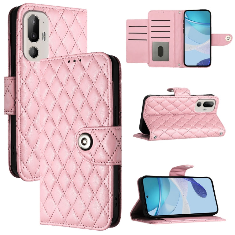 Funda de Cuero con Tapa y Textura Rombal para HTC U24 Pro con Cordón (Rosa)