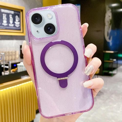 For iPhone 15 Plus Glitter MagSafe Magnetic Phone Case with Stand (Purple)