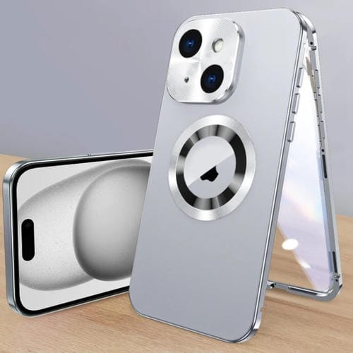 Estuche Magnético para Teléfono iPhone 15 Plus Vidrio Templado HD (Plateado)