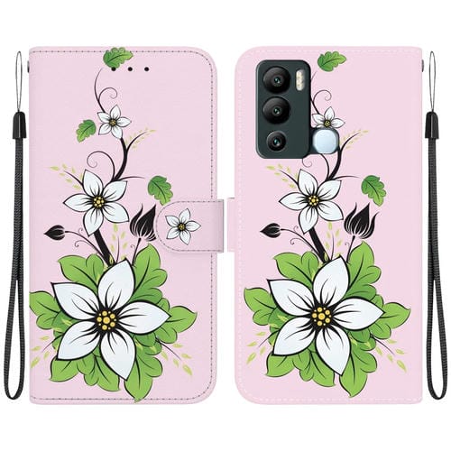 Funda de Cuero para Infinix Hot 12I con Dibujo Coloreado y Textura de Cristal (Lirio)