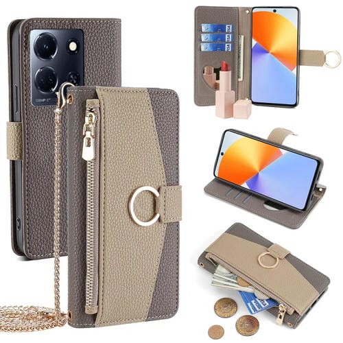 Funda de Cuero Crossbody Litchi Texture para Infinix Note 30 4G (Gris)