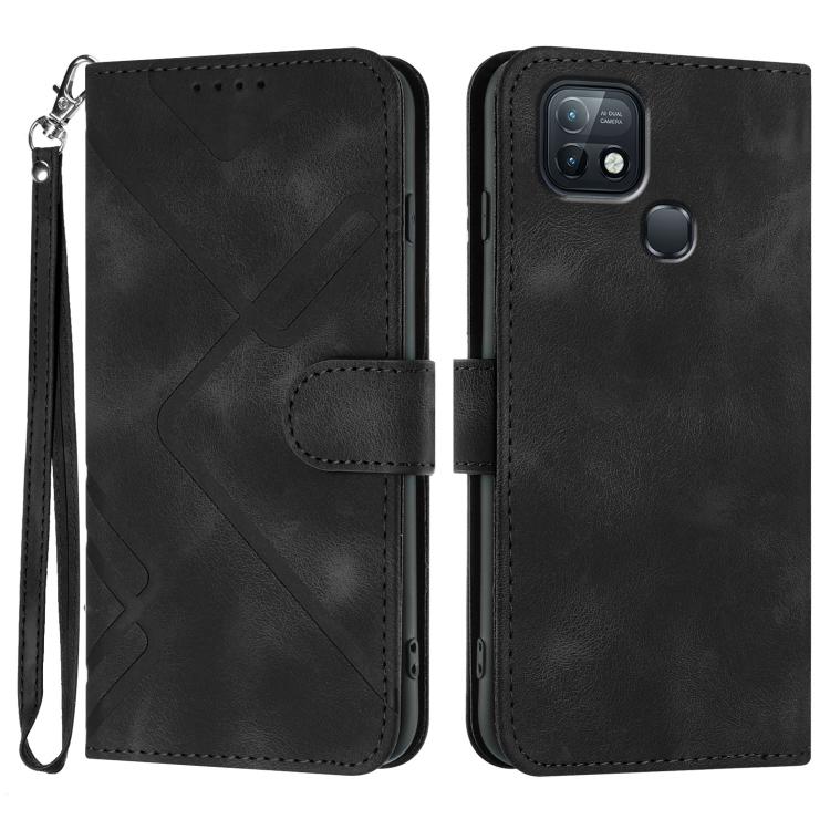 Funda de Cuero para Infinix Hot 10I con Diseño de Líneas y Tacto Suave (Negro)