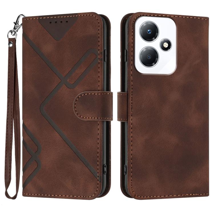 Funda de Cuero para Infinix Hot 30 Play y Hot 30 Play Nfc con Diseño de Líneas (Café)