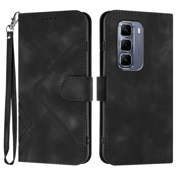 Funda de Cuero para Infinix Hot 50 Pro 4G con Diseño de Líneas y Tacto Suave (Negra)