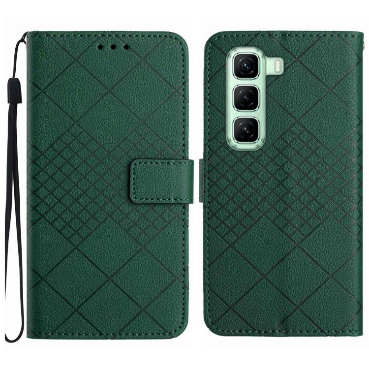 Funda de Cuero con Textura de Cuadrícula Rómbica para Infinix Hot 50 Pro+ 4G (Verde)
