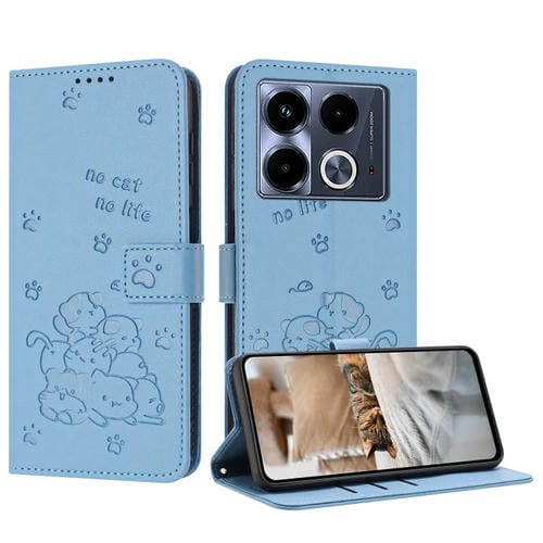 Funda de Cuero Infinix Note 40 4G con Diseño de Gatito en Relieve y Cordón (Azul)