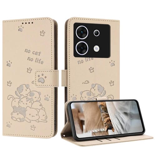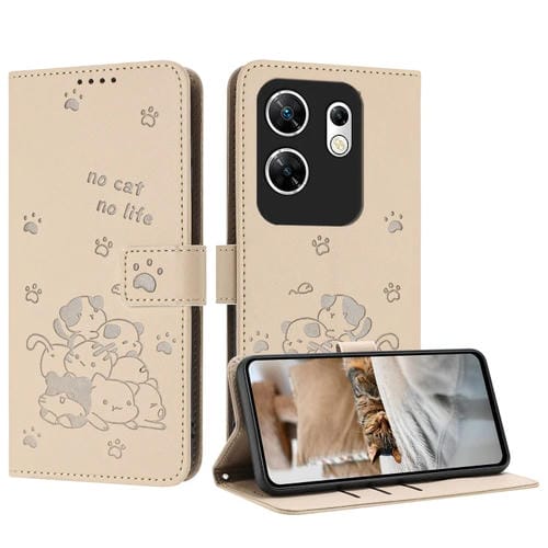 Funda de Cuero Infinix Note 40X 5G con Diseño de Gatito en Relieve y Cordón (Beige)