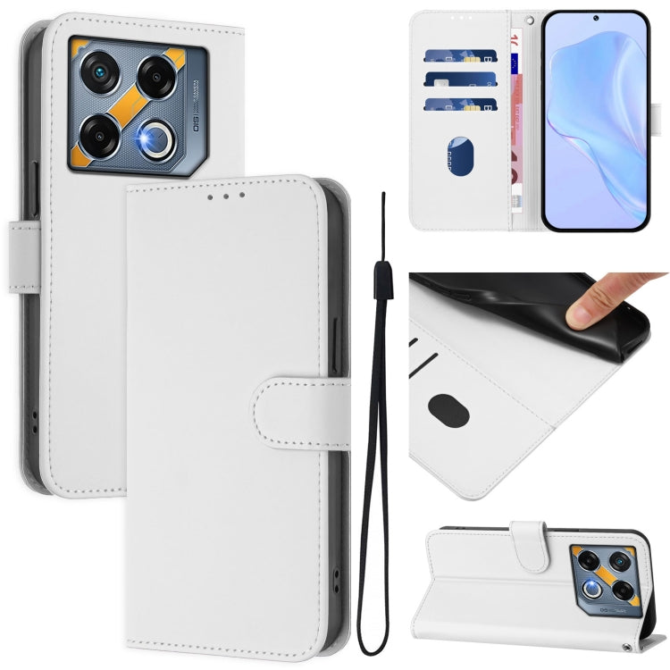 Funda de Cuero con Textura de Piel para Infinix GT 20 Pro 5G con Cordón (Blanco)