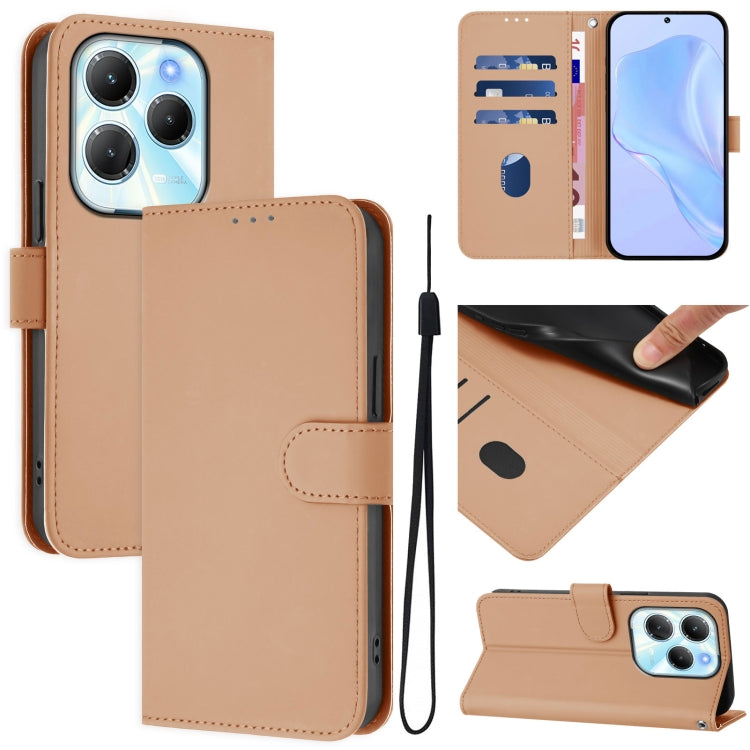 Funda de Cuero con Cordón para Infinix Hot 50 5G con Tacto de Piel (Marrón)