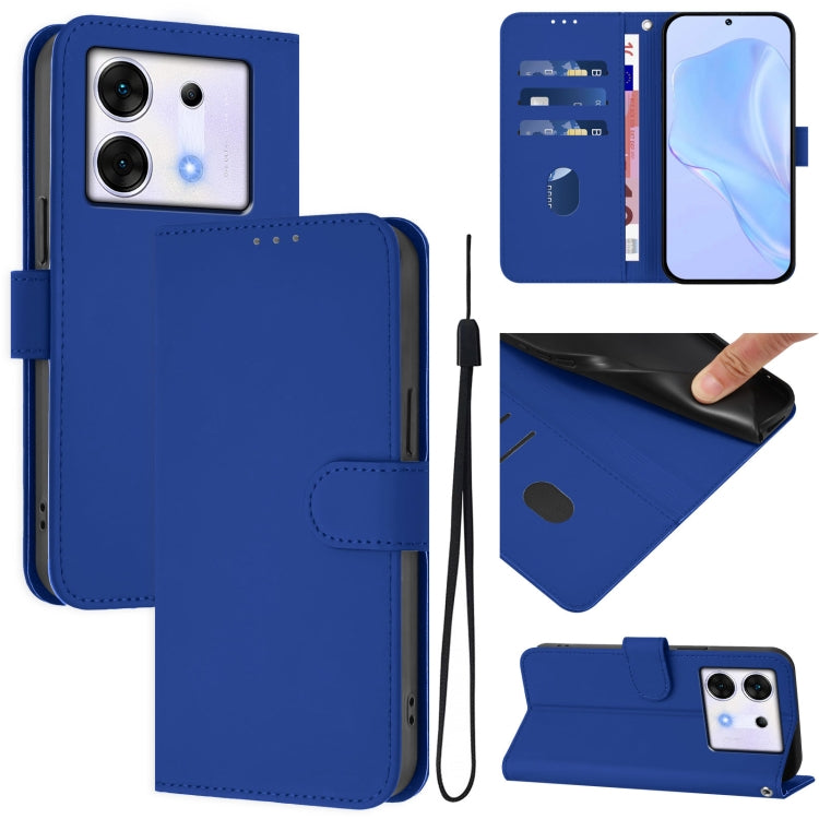Funda de Cuero con Cordón para Infinix Zero 40 4G/5G con Tacto de Piel (Azul Oscuro)