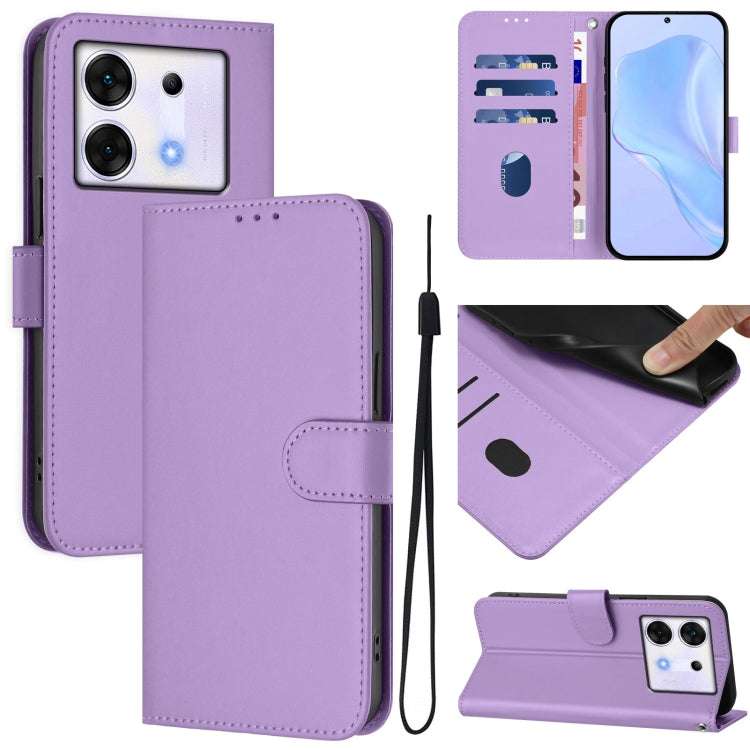 Funda de Cuero con Cordón para Infinix Zero 30 5G con Tacto de Piel (Morado Lavanda)
