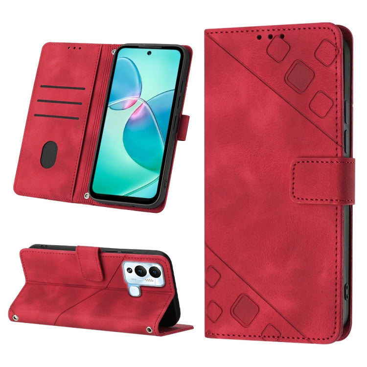 Estuche para Teléfono Infinix Hot 11 Skin-Feel Cuero en Relieve (Rojo)