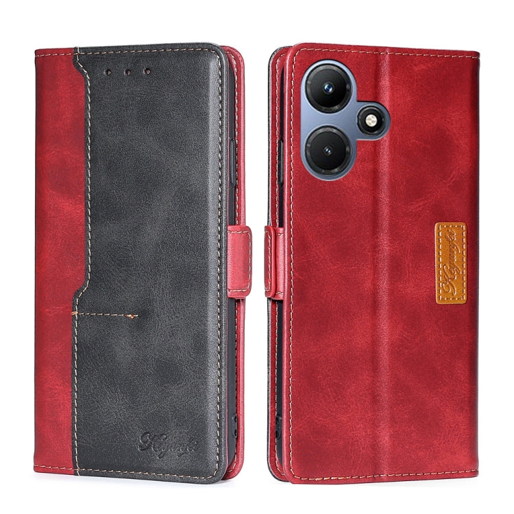 Caja de Teléfono de Cuero para Infinix Hot 30I 4G con Hebilla Lateral (Rojo + Negro)