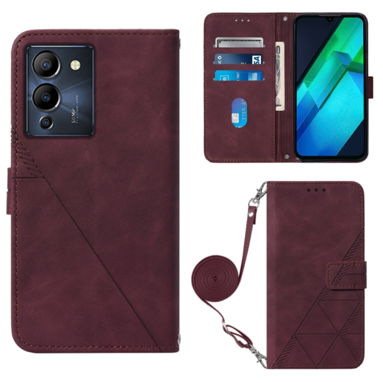 Funda de Cuero para Infinix Note 12 G96 Crossbody 3D con Tapa en Relieve (Rojo Vino)
