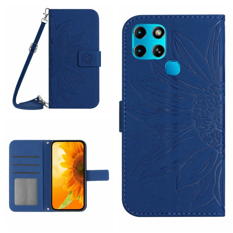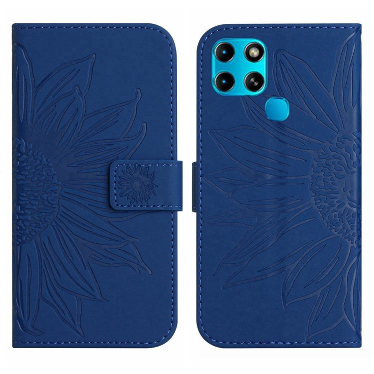 Funda Flip de Cuero para Infinix Smart 6 con Cordón y Diseño Sun Flower (Azul Oscuro)