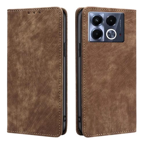 Funda de Cuero Magnética con Cepillo Antirrobo RFID para Infinix Note 40 5G (Marrón)