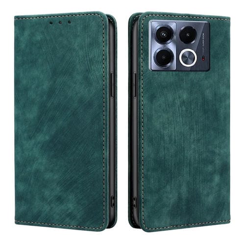 Funda de Cuero Magnética con Cepillo Antirrobo RFID para Infinix Note 40 5G (Verde)