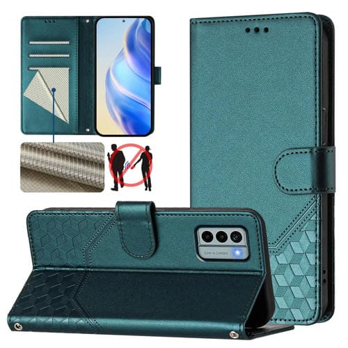 Funda de Cuero Rfid con Relieve en Panal para Nokia G42/G310 (Verde Pavo Real)