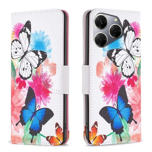 Funda de Cuero para Tecno Spark 20 Pro con PatrĂłn de Dibujo Coloreado (Mariposas)