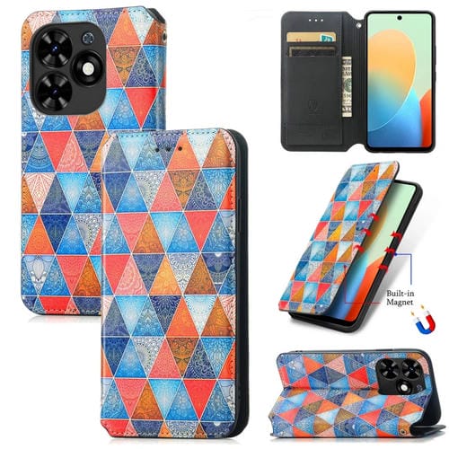 Funda de Cuero Magnética Caseneo para Tecno Spark Go 2024 (Rhombus Mandala)
