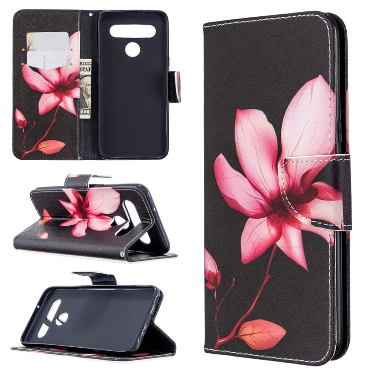 Estuche de Cuero para LG K61 con Dibujo Coloreado y Textura de Cristal (Peonía de Cristal)