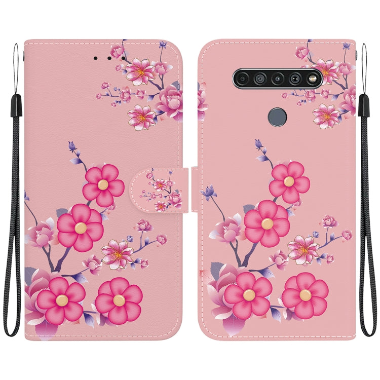 Estuche de Cuero para LG K61 con Dibujo Coloreado y Textura de Cristal (Flores de Cerezo)