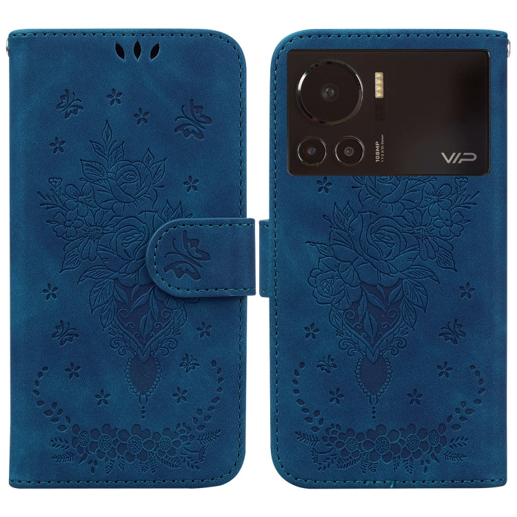 Estuche para Infinix Note 12 Vip Butterfly Rose de Cuero en Relieve (Azul)