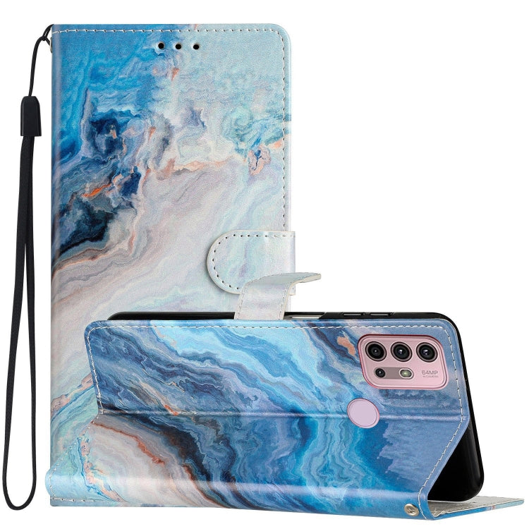 Estuche para Motorola Moto G10 G30 de Cuero con Dibujo Coloreado Mármol Azul