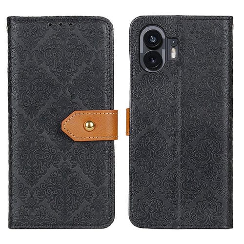 Estuche para Nothing Phone 2 de Cuero con Relieve Floral Europeo (Negro)